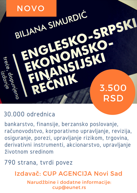 Речник је намењен акционарима, банкарима, брокерима/дилерима, инвеститорима, полазницима стручних курсева, преводиоцима, студентима, свим учесницима у међународном пословању. Ново, проширено издање!